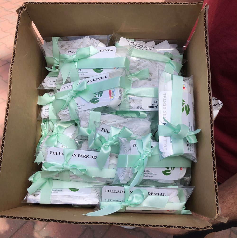So instead we created some beautifully presented oral care packages to give out to local residents to help them keep their teeth and gums healthy.